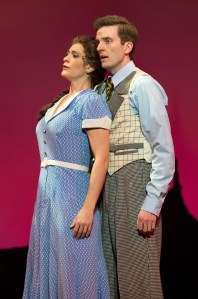 “Vaudeville, tap, ballroom, jazz …” says Bowron, who’s petite and vivacious. “I get lifted a lot in Naughty Baby (Irene’s big number). Which is thrilling to me!” Her partner, and target, is played by Jesse Gervais who is, she says, “a dancer, and an incredible athlete, so graceful and strong. He can just throw himself into it!”