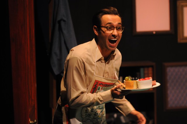 It seems absolutely right, therefore, that Cory Sincennes’ set would be “a great big Italian dining room, with a huge dinner table, and a back wall plastered with photos of Salvatore’s family — “that just happen to be pictures of my family.” And Timoteo, who plays 19 characters in all — mostly older than Francesco and “mostly amalgams” — has created “a dinner table scene I just love to do, where I play everyone!”