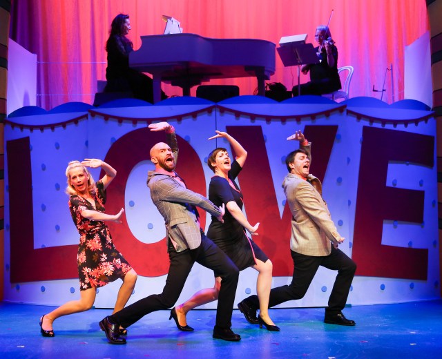 And you’ll see the charm and the fun of the experience in a crack Kate Ryan production at the Mayfield that demonstrates unequivocally — as if you ever doubted it — what a really expert cast of singing actors can do by way of making the recognition factor sizzle. Jocelyn Ahlf, Patricia Zentilli, Robbie Towns and Scott Walters have lustrous, malleable musical theatre voices, comic timing, and attentive relationships — with each other, the 60-odd characters they’re playing, the lyrics.