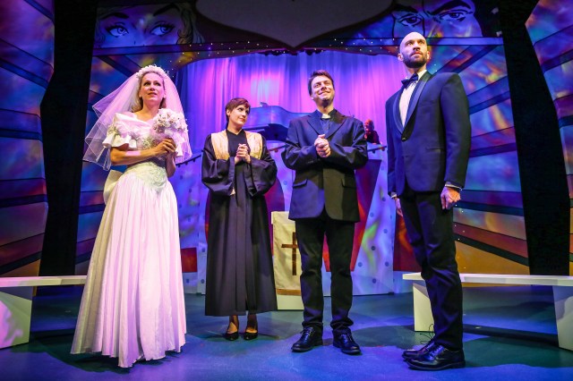 Patricia Zentilli, Robbie Towns, Jocelyn Ahlf, Scott Walters in I Love You, You’re Perfect, Now Change, Mayfield Theatre. Photo by Ed Ellis