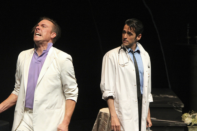 Jesse Gervais and Mark Meer, as estranged brothers bDax and Dr. Rex Rochefort in Die-Nasty, season #27. Photo by Janna Hove.