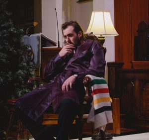 And that’s where you’ll find Benjamin Blyth’s highly enjoyable Malachite Theatre production. It savours the contradictions: stained glass, walls lined with candles and wine bottles, Christmas trees everywhere and in every state of un-decoration including zero, at the altar and in the aisles. You can never quite figure out whether you’re outside or in-, in this version of a Shakespearean comedy that is perhaps the richest in household details of any in the canon. There are a lot of plaid bathrobes in the Twelfth Night conceived by the English company for a 12-member cast of Edmonton and Calgary actors — and they co-exist with toques, gloves, and Hudson’s Bay scarves and blankets
