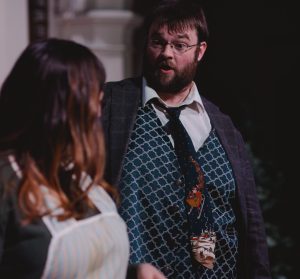 In LaRose’s appealing performance as Olivia, the carapace of grief and aristocratic hauteur is thin already and ready for the melting, It doesn’t take much: one look at Cesario, and it vanishes entirely, uncovering a heart ready for love and lightness of being. As Orsino, Grindstone Theatre’s Byron Martin delivers an amusing portrait of an unravelling aristocrat wallowing in unrequited love; he never quite gets fully dressed, and flings himself into an armchair (with his Bay blankie) to revel in his tragical state.
