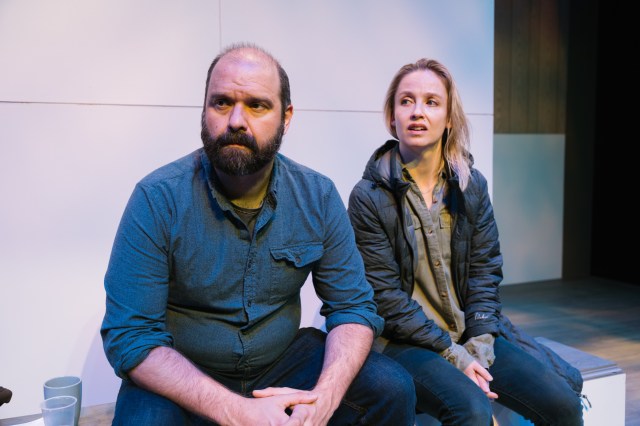 He grapples with that tone. It’s “‘I miss him’ versus ‘I think about him every day’.” The nuances are delicate, and they’re explored as a painful excavation of wounded souls by these two fine actors. He thinks she’s given herself over to grief; she thinks his attempts to move on with his life, to try and start again, are a form of escape.