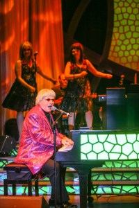 In Act II, very different in theatrical style, the narrator cedes his role to Elton John’s early music-writing partner Bernie Taupin. And Retson-Spalding, new to the Mayfield stage, takes over at the grand piano as the energetically flamboyant pop star with the neo-Liberace taste in evening wear. He evokes the mannerisms, and the vocal/keyboard pizzaz of Elton John with gusto and humour.