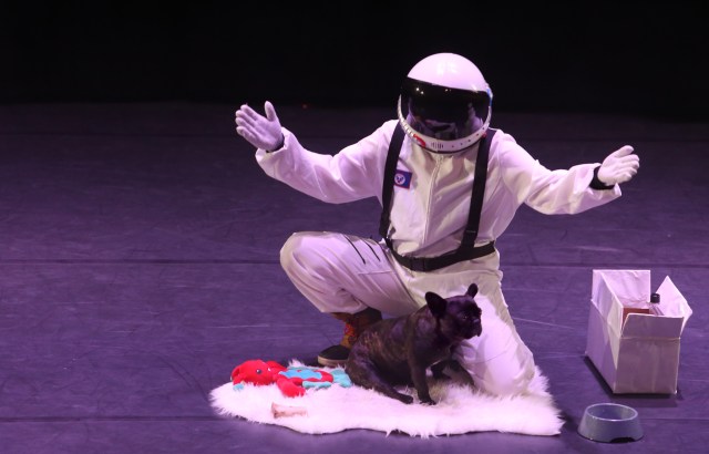 The unpredictability factor, ramped up to a terrifying degree, is built into Jezebel, At The Still Point. Created by Ainsley Hillyard, consistently one of our most adventurous dance/ theatre artists, it’s a movement/text exploration of time travelling in which she co-stars with her (untrained) French bulldog Jezebel. In performances in Winnipeg, Jezebel, who has a mind of her own, occasionally wandered off the stage, and mingled with the audience. There’s just no telling. It’s in the Roxy Performance Series Oct 9 to 21.