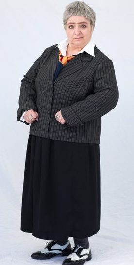 Brausen’s witty touch with costumes is currently on display in Teatro’s season finale Skirts on Fire, a screwball comedy set in 1950s Manhattan. She’s having fun with Gertrude and Alice, and the 20s boho look. “I’m the uni-brow; Davina’s the moustache,” laughs Brausen. “ I wear a long women’s jacket, dark socks, shirt and tie, wingtip shoes. And I’ve cut the worst gray wig in the worst way! Davina as Alice has a dress with a kimono over it….”