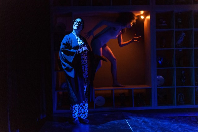 Molly’s home turf, as designed by director Schmidt with gorgeous (and dramatically purposeful) lighting by Elise Jason, is the beautiful clutter of a civilized mind that collects — artifacts, books, diverse memorabilia, knowledge. Ah yes, and an assortment of every kind of clock, ticking and chiming and reduced at times to a sort of human pulse (sound design by Kiidra Duhault).