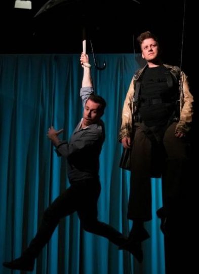 Dugan’s cast for the journey through hell includes actors who keep their feet on terra firm, actor/aerialists like Cornish who don’t, very game thesps (like Mat Busby, who as Virgil leaves the ground clutching an umbrella, like a medieval Mary Poppins) venturing into circus for the first time. There are aerialists, acrobats, contortionists, dancers, a small cute dog….