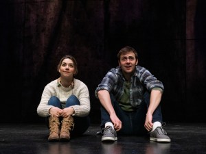 Theirs is not an inconsiderable achievement in a scant week’s rehearsal. Lungs doesn’t have a set or props or costume changes, true. But at 90 continuous minutes, it takes a daunting amount of lung power: it’s full to overflowing with words, edgy shards and cross-hatched fragments. And there are no breaks or even pauses between scenes. Understandably, Porter and Tkaczyk had scripts in hand on the re-scheduled opening night even if they weren’t tied to using them.