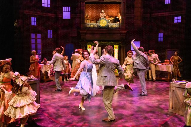 The visual possibilities were nothing if not inspiring for designer Cory Sincennes. Since the ghostly interventions for the ossified soul of Scrooge propel him into the past, there’s a half-century — including Edwardian early-Scrooge, the 1920s, the Depression, the ‘40s — to work with. “So much fun to costume!” says van Belle. The Fezziwigs’ party is in the ‘20s, for example, with an early Flapper look.