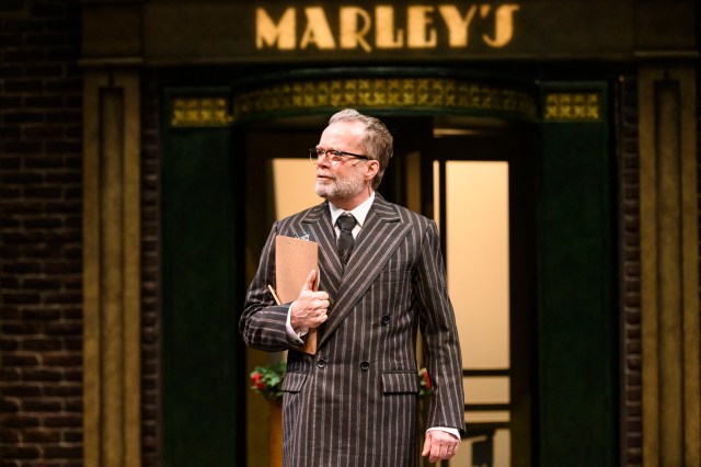 Scrooge unleashes his bitter ironies on a world of “foolish people at a foolish time of year,” as he notes, with adamantine brevity. When Scrooge, for example, mocks the two businessmen canvassing for a Christmas charity, he notes that they have “enough sincerity for a career in politics.” On opening night, that sneer got a big laugh: we recognize our own screwed-up world when we hear it.