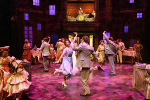 Cavils aside, this is the first airing of a show that will invite future visits. And the period has inspired a handsome design by Sincennes, lit by Leigh Ann Vardy and dominated by a clock and a revolving department store door used cunningly by director Cloran to spill characters onto the stage. And Sincennes’s costumes, which achieve a kind of apotheosis at the Christmas party thrown by the Fezziwigs (Vance Avery, Belinda Cornish), are lovely, and fun to look at, set in motion by Laura Krewski’s allusive choreography.