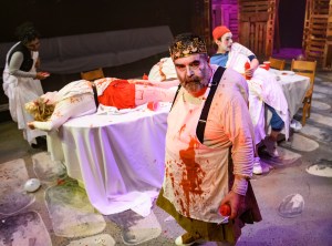 These eager amateurs in the theatre have chosen it for impeccable scholarly reasons: of all the plays in the sacred canon, “it’s the one with the most murders.” What happens is a madcap black comedy containing assorted neck-breakings, rape, beheadings, crucifixions, dismemberments and maimings, infanticides, cannibalism — and that’s just the stuff lifted from Titus Andronicus. (Which, by the way, is A Timeless Classic since it’s by the greatest playwright who ever lived and also wrote Romeo and Juliet).