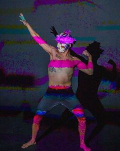 The imaged that gripped them from the start, Houseman says, “the idea of Indigenous actors painted in whiteface.… We wanted to show people the real price of cultural appropriation, how it feels to see your face misrepresented. A very conscious stereotyping of the White Face to tell this story of cultural appropriation.” In the course of Whiteface he and Cardona wrestle, in powerful choregraphed sequences, with layers of grotesque, white-faced masks, a tangible demonstration of how hard it is to peel off a distorted stereotype.