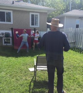 The size of the audience (masks not mandatory but recommended) is up to the customer, regulated by COVID guidelines and the size of the yard. “When we started, the maximum for an outdoor gathering was 15. Now things have loosened up a bit; 100 people can gather so long as distance is observed. We’d be equally happy doing the show for an audience of one…. Most of the people who’ve booked are expecting 20 or 30 people, so I imagine that’ll be the norm.”