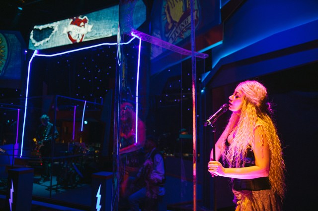 The original idea was “a contemporary Vegas show,” says Wilmott. “It got pulled by budget, so we reinvented.” Instead this latest from the prolific Mayfield collaborator Will Marks is a deep dive into the archive of ‘70s hits. And the premise, as Wilmott describes, works assiduously around COVID safety protocols (and got OK’ed by the government). It starts with this, tailored expressly for the times: “when you’re singing you’ve got to be in a box.”