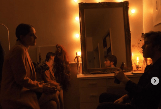 In the three episodes, the familiar spaces inhabited by the artist-characters are invaded by their own personal ghosts. Episode 1, which happens during the intermission of a play, an actor is visited by a former lover. A muse, his first love, arrives in the musician’s backstage dressing room in episode 2. Jackson Card, who plays the musician, has been learning the guitar during lockdown, as Corcoran reports. “He arranged, and played, the cover of an old Irish song The Wild Rover.” Episode 3 happens in and out of a house shared by artists who, in their own ways, are chafing at an impasse, a creator’s block in lockdown. The cathartic group dance and scream at the climax is something you’ll welcome in your bones.