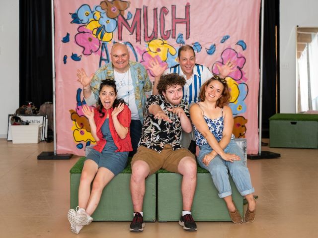Troy O’Donnell, Ian Leung (rear), front from left Christina Nguygen, Yassine E Fassi El Fihri, Sarah Feutl in Much Ado About Nothing, Freewill Shakespeare Festival. Photo by Marc J Chalifoux