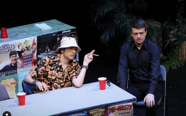 The Die-Nasty cast, with guests, rotates through the nightly performances, directed by Ron Pederson, with scene intros that are hilarious in themselves. Yup, there was Mark Meer’s very funny Hunter S. Thompson character, renamed Fisher T. Johnson, conducting interviews for his podcast Children of a Lesser Pod. His interviewee Wednesday night was Bart Gold (Wayne Jones), celebratory realtor, whose face is on every bus stop bench in Old Strathcona. As we learn in the improvised self-introductions at the outset, he’s not at the Fringe to find the next great Edmonton play (unlike everyone else … just kidding) but on the lookout for his fourth (“and best”) wife.