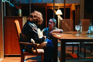 When Michael’s grandmother dies, he’s unhinged in the world, utterly on his own. There’s the kid, sitting immobile under a single lamp, in a room we glimpse at the back of the stage, through the bones of another house. Then Arlene (Amber Borotsik), the mom of Michael’s erstwhile best friend Jeremy (Thomas Tunski) arrives to take him into the family home she’s struggling to create with her new boyfriend Paul (Jesse Gervais) and his teenage daughter July (Christina Nguyen).