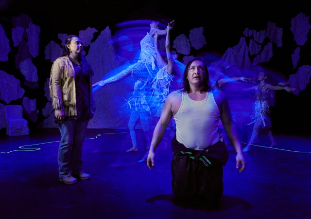 To journey into the heart of Nature (this is the kind of play that makes you want to use the capital-N) is to be transformed, re-born so to speak, by the continuity between man and the natural world, a harmony sacred to the Indigenous vision. And it’s conjured in the strangest, most entertainingly quirky and ingenious juxtaposition of poetic text, humorous asides, choreographed movement, light, and sound, as you’ll see in the Punctuate! Theatre production that puts the multi- back into the much-battered term multi-disciplinary. Directed by MacKenzie, it’s at the Citadel through Oct. 31.