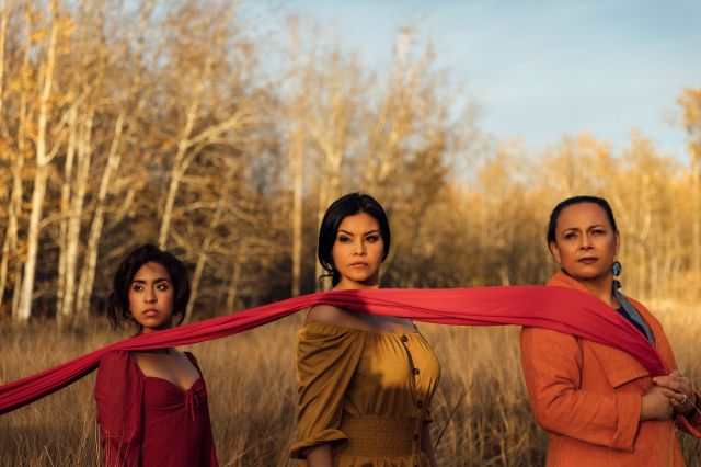Janira Moncayo, Teneil Whiskeyjack, Christine Sokaymoh Frederick in Ayita, SkirtsAfire 2022. Photo by Noelle Steinhauer