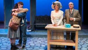The play is a virtuoso series of duets, trios and quartets, some of them addressed to the other characters onstage, and some of them to the audience as you come to realize, and some of them both (I think, it’s confusing). Bloomsday gives Robert and Cait (Coralie Cairns) the chance to meet up with their younger selves, Robbie and Caithleen, and re-visit and re-assess the might-have-been moment, full of possibility and frozen in time lo these many years.