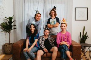 (Rear) Jesse Gervais, Gavin Dyer; (front) Christina Nguyen, Thomas Tunski, Amber Borotsik, in Michael Mysterious, Pyretic Productions. Photo by BB Collective Photography.