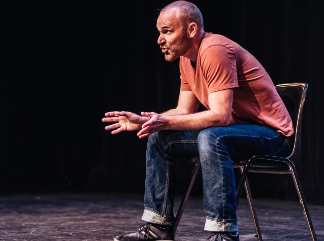 Paterson’s mom, his biggest supporter, stage managed, promoted, helped with his productions across the country. And now, it transpires, we’re in a Paterson show at the Fringe, sitting in the Sue Paterson Theatre at the College Saint-Jean, named after her. It’s a conjuring turn, Paterson’s homage to the mom he regained only to lose her again in the wordless mists of dementia. She seems to have returned to the theatre; he thinks so.