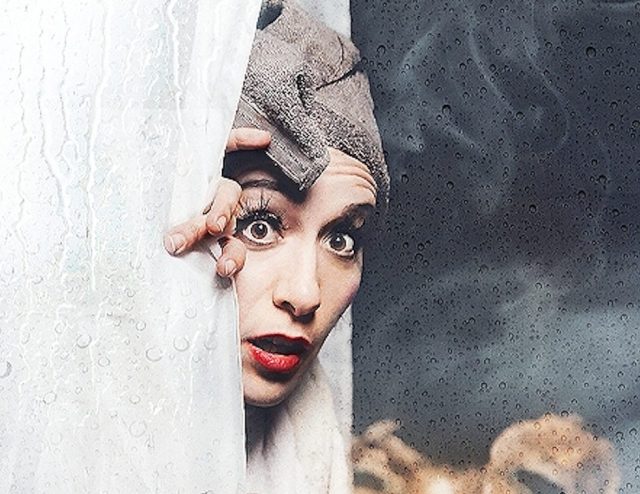 Clowns seem to be, by nature, free-associaters. By the time our protagonist arrives onstage in the flesh from behind the shower curtain after a lengthy set-up, the toilet brush that’s been up a nostril will become a microphone, and red lipstick and shower-singing will transform her into a Frenchified chanteuse (gargling turns into those sexy Piaf rrrrr’s). Or the brush is a conductor’s baton and the audience will turn into the orchestra.
