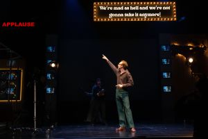 “The show is very specifically set in the 1970s; all references to current events are ‘70s. But you don’t have to work very hard to find contemporary equivalents, for sure,” notwithstanding the proliferation (and splintering) of media platforms. As if to illustrate his point, rehearsals started on the very day a TV anchor controversy erupted; ITV and the sacking of Lisa LaFlamme. As Cloran points out, public reliance on big networks may have diminished now “and we engage with the screen in multiple ways … but there are just more screens; the corporate manoeuvring is exactly the same.”