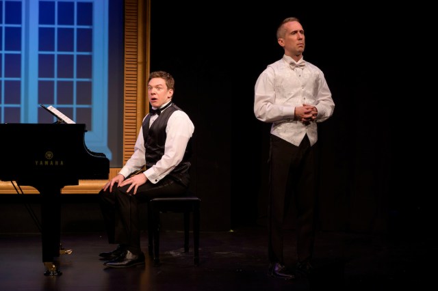 The charming, poignant, and very funny musical comedy now at the Mayfield begins in classic concert fashion: the bow from the waist and the flipping of the tuxedo tails. Two men in formal tuxes take their seats at two facing (Yamaha) grand pianos onstage.
