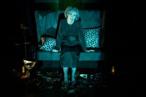 Which is weird, since Squeamish is a story. And the storyteller, Davina Stewart in a bona fide 90-minute tour de force, is just sitting in a chair in the shadows, talking. There’s atmosphere aplenty in Trevor Schmidt’s production. The room has an eerie sort of elegance, beautifully designed by Schmidt. Chris Dela Cruz’s lighting, which brings colour to the dark, is a virtuoso display of unease in itself, with its single light source.