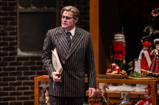 The Scrooge of this adaptation, relocated a century ahead of Dickens, in retail and across the pond, is younger than the ossified Victorian bean-counter of Dickens’ novella. Still, Ullyatt is unusually young for Scrooge. “I haven’t done anything with my voice,” he says. “Maybe I’ll end up Grandpa Simpson. But so far, it’s just me trying to find my own way through it,” he says of a role that has often downsized Scrooge to iconic grouch. “I’m going through it the way I would any play.”