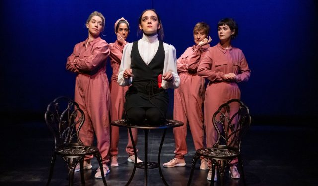 Dayna Lee Hoffman (top), Coralie Cairns, Elena Porter, Sophie May Healey, Noori Gill in All The Little Animals I Have Eaten, Shadow Theatre. Photo by Ian Jackson