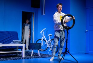 “Each scene has to feel fast and furious like a YouTube video, both a form and a style choice.” And because video is “a real thing that’s happened, time is all over the place.” But never fear, we won’t be lost in time. Subscribe or Like is the only play of the season with “a handy subscriber counter” onstage, from a handful to 10s of thousands, to remind us where we are in the story.