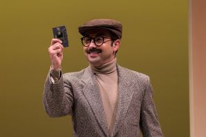 Both Ariate and Hulowski, be-wigged by costume designer Leona Brausen, have the fun of playing all the other characters. The former is, for one, the callow new bookshop manager whose main concern is covering his butt. Hulowski plays all the obstructionist receptionists (sorry, “executive assistants”) in Montague’s disastrous venture into the labyrinthine corporate headquarters to meet the big boss. The apocalyptic look on Timoteo’s face as the ‘elevator’ version of Girl From Ipanema goes on the fritz is a keeper.