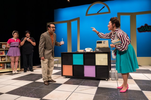 Montague’s obsession is vividly set forth in a bristling, physically acrobatic performance by Timoteo, an expert comic actor. He’s very funny as a character with his dander up, both fastidious and hyper-active. He bustles and dances through his world dusting books, picking up cues from the soundtrack he’s selected specially to be conducive to browsing. Montague’s fellow clerk Chuck (amusingly played byAlexander Ariate), a poli-sci grad student who calls himself an “anarchist realist,” indulges him, because (shrug) why not?.