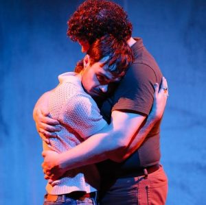 In Brett Dahl’s inventive production, the stage designed by Whittyn Jason is dominated by an old trunk, Liam’s own pandora’s box of mysteries which he nervously refuses to open. In fact Liam (playwright Monaghan), a queer musician who’s just moved in with his hard-working oncologist boyfriend Joseph (Graham Mothersill), has made anxiety about its contents into a veritable art form; his response is flamboyant self-creation.