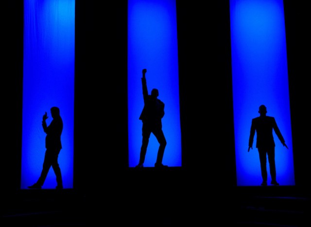 In Clusterflick, the elite trio of maker-uppers called Gordon’s Big Bald Head — Jacob Banigan, Mark Meer, Ron Pederson — improvise an entire movie on the spot, in all its complications, a new one every night. Western, sci fi, psycho-thriller, historical romance, film noir, romantic comedy. … And this they do using the cues and prompts they get from the audience. “Thank goodness you’re here,” they say to us at the outset.