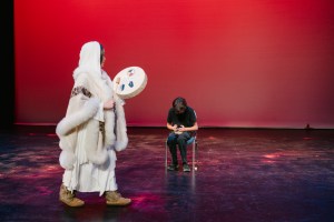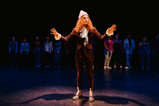 Another queen, Hamlet’s mom Gertrude, played in high style by Guys in Disguise’s Zachary Parsons-Lozinski, did a memorable phone-acting scene with Ophelia, taking her cue from Polonius and trying to ferret out the goods on her wayward son’s activities — with whom and how many?