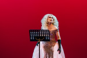 Zachary Parsons-Lozinski as Hamlet’s mama in Guys in Disguise’s scene in The Play’s The Thing, Theatre Yes. Photo by Mat Simpson