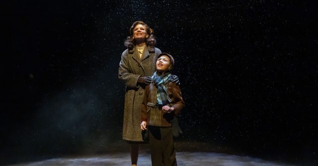 Mrs. Cratchit (Patricia Zentilli), the much put-upon store manager whose first name is never used by the boss, is a war widow and single mom working hard and struggling to make ends meet. And while the stakes aren’t life and death by starvation in same way as Dickens’ original attack on the viciousness of Victorian capitalism, the inequities do speak to our moment of souls lost in the ever-widening crevice between the haves and the have-nots. Zentilli sings the wistful “have yourself a merry little Christmas,” and the operative word is “little.” Elias Martin is, again, adorable as the youngest, at-risk, Cratchit.