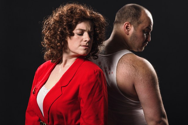 Mhairi Berg and Evan Dowling in Die Harsh The Christmas Musical, Grindstone Theatre. Photo by Adam Goudreau