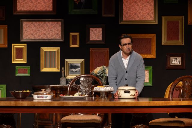 In scenes that gather momentum, at speed in Daryl Cloran’s production, Timoteo will create an entire Italian family of vivid characters around it, single-handedly and with great precision — hypochrondriac aunties, quirky uncles, smarty-pants cousins, assorted sidekicks in both the Old and New Worlds. It’s his stage. He will sing and dance on it, lift weights on it, do push-ups on it, leap off and onto it in a high-speed profusion of guises. And in the course of a play based on Timoteo’s own immigrant family experiences and structured as courses of an Italian dinner, he’ll bring to it the traditional succession of dishes, from the aperitivo to the dolce. At one point, amazingly, he will populate an entire dinner party — molto vivace and with great clarity.