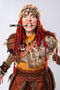 Erika The Red. Vancouver’s much-travelled Monster Theatre, history junkies who’ve turned their wits to such modest little projects as “every story ever told,” the complete history Canada in 60 minutes, War and Peace got fascinated by … Vikings. The star of this “epic one-woman Viking saga,” charismatic Tara Travis (half the creative/performing team of The Spinsters), is back at the Edmonton Fringe for the first time since her solo murder mystery Who Killed Gertrude Crump?. Travis, a Monster associate since 1999, explains that DNA testing on an impressive Viking grave proved that its occupant, intriguingly, was a woman. “This is our imagining of who she was and who she came to be,” says Travis of our heroine, bent on revenge when her village is burned to the ground. “It’s the most technically ambitious Fringe show we’ve ever done,” co-written with Monster’s Ryan Gladstone. Expect complicated projections. Travis, meanwhile, is crossing the Rockies in a car full of Viking weapons. Check out the droll mockumentary on the Monster website.