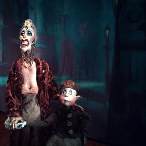 Esmé Massengill and Schnitzel in Little Dickens, Ronnie Burkett Theatre of Marionettes, at Theatre Network.