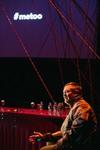 Angry Alan is a fictional surrogate for Jordan Peterson, Joe Rogan, Andrew Tate and their ilk in the online world, captured by sound and projection designer Amelia Chan. And when he stumbles on the website of the title, Roger gets the acknowledgment for which he’s been hungering. He has an epiphany, a life-changer, what he calls “a red pill moment.”