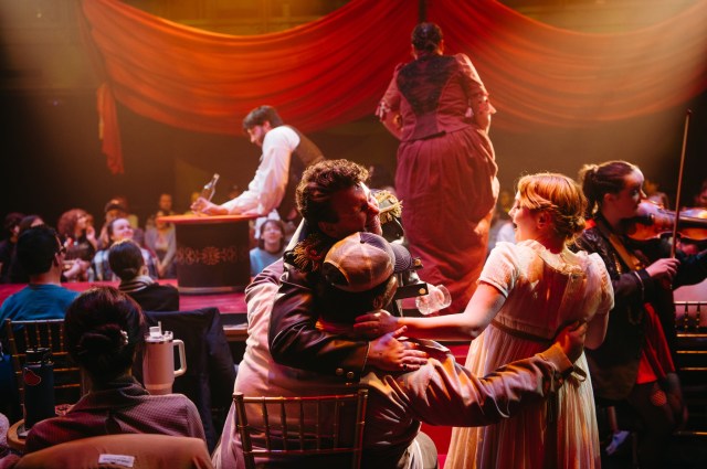 I’ve seen the musical twice before in New York, once in a tent and once in a full Broadway theatre, sacked for the occasion with interlocking catwalks, to make that audience immersion possible. And this production, like those, feels like a party. I got a chance, unexpectedly, to experience it on the final weekend of a sold-out run.